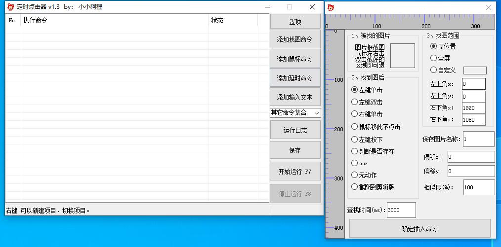 支持屏幕缩放。 新增 百度ocr(自己申请key,实名用户每月可领1000次免费),对接StupidOCR普通验证码功能(滑块和点选未支持),win10ocr(速度快,但是识别率不高,无次数限制,需win10及以上系统)。 可以对识别到的结果进行判断,也可以直接输入,或者赋值给变量,其它命令可以调用。但是对于变量操作可能文字介绍起来比较麻烦,普通用户可以忽略这个功能。 新增 鼠标的一些操作类型,具体直接看图。 新增 播放MP3。停止播放MP3。 新增 运行指定程序或打开文件 新增 设置变量 新增 依次读入一行文本。就是调用一次,读入该文件的一行文本。 新增 运行日志 新增 设置热键 新增 反馈 新增 模拟按键支持直接点选和录入键盘被按下的按键。 修复: 同步网络时间 不执行的问题。现修改为,开启软件即同步北京时间。 移除: 捐赠入口。反正也没人捐赠。 写的功能我并没有全部仔细的测试过,如果问题可以留言反馈。 本辅助完全免费,仅供测试使用。请勿倒卖。随便找了个工具加了个小壳,防止小白直接修改。 基础的使用也很简单,一条命令一条命令加就行。上个帖子也有部分代码可以参考。复杂的操作估计需要做视频教程才容易说清楚,但是现在我没空录制,以后再看看。 对于以后的更新会侧重于实操上的优化。 下载地址:https://520xzs.lanzouy.com/b012n7kwb密码:2th8 看不见下载,请回复本帖